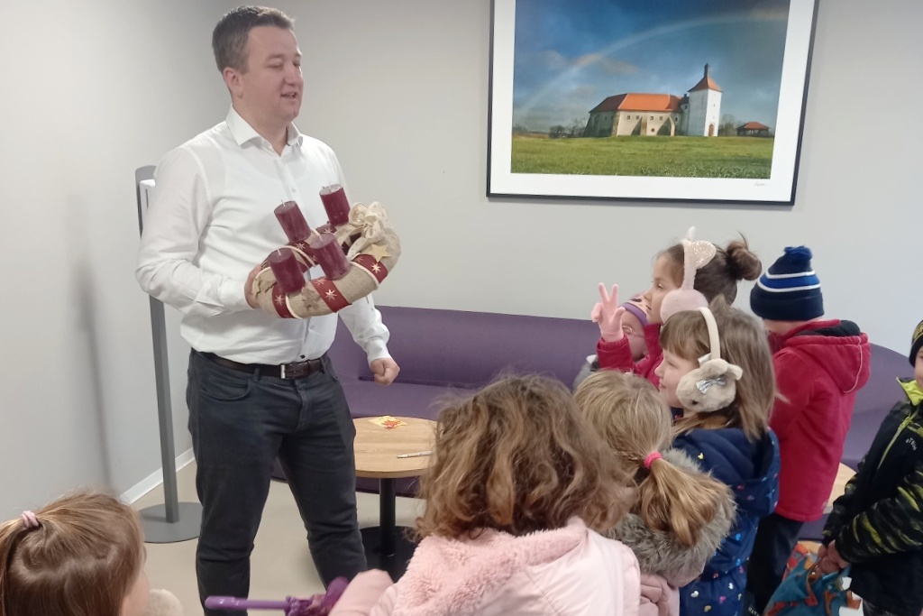 Naime, ususret nadolazećim božićnim blagdanima i paljenju prve adventske svijeće mališani su gradonačelniku poklonili adventski vjenčić.
