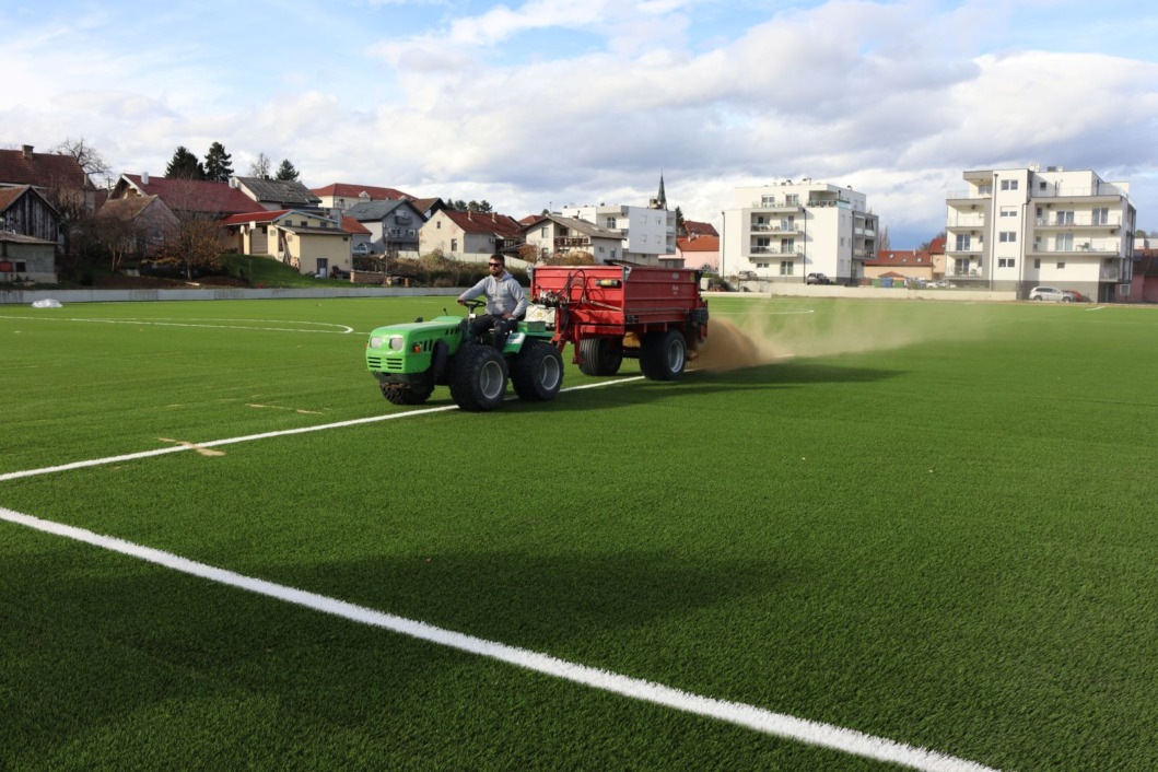 Održavanje terena s umjetnom travom na križevačkom stadionu // Foto: Grad Križevci