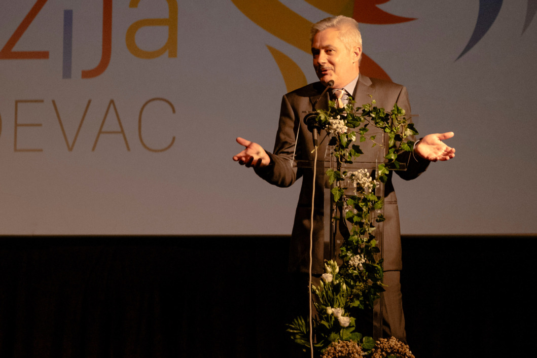 “Divovi su tu među vama, oni grade i rijeke i mora, oni stvaraju od djece ljude. Ništa se ne gradi bez temelja, a najjači su temelji ramena divova. Ova škola je izgrađena na ramenima divova. Bez tih mađioničara nemogućeg, bez njihovog velikog srca, bez divova u njima ničeg od svega ovog danas ne bi bilo. Molim vas čestitajmo im jednim gromoglasnim pljeskom. Ovo su naši divovi. Ovo su oni koji će dok svi spavaju, graditi svjetove i ovo su oni koji jesu i koji će postati ramena drugima da se popnu do zvijezda. Sretan vam rođendan moji nastavnici, kolege i prijatelji”, rekao je ravnatelj Ostojić.
