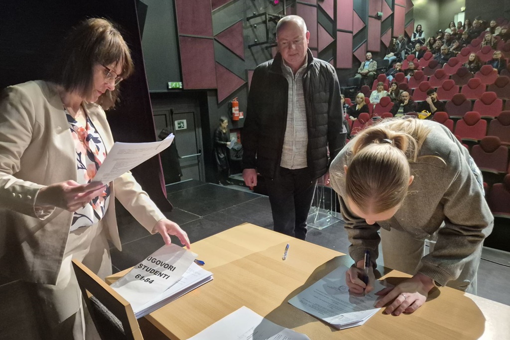 Svečano potpisivanje ugovora sa studentima upriličeno je u subotu u Kulturnom centru “Ivan Rabuzin”, a tom je prilikom gradonačelnik Siniša Jenkač potpisao 84 ugovora o dodjeli stipendija.