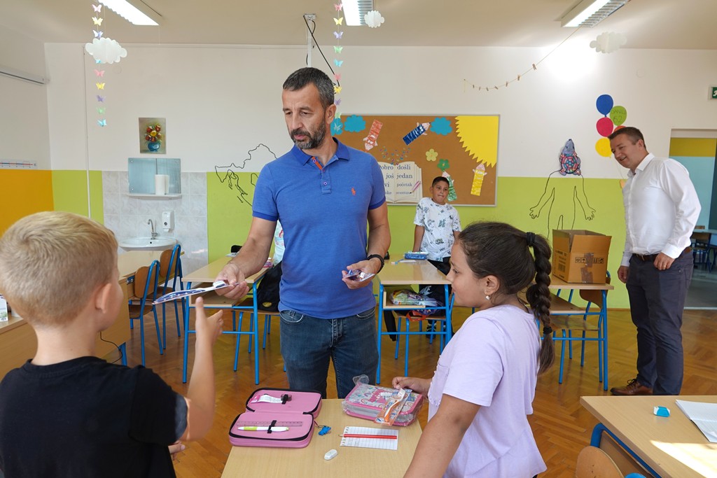 “Tradicionalni je to naš posjet učenicima i učiteljicama područnih škola u koji nikada ne krećemo praznih ruku. I ove smo ih godine željeli obradovati malim znakom pažnje kako bi im uljepšali prvi školski dan, ali i njihov boravak u školi. Četkicama za zube želimo podsjetiti da se nastavlja naša preventivna akcija zaštite zubi i ove godine. Želim svima puno uspjeha u novoj školskoj godini, a prvašićima da svoje prve dane u školi pamte po lijepim trenucima”, istaknuo je gradonačelnik Hrvoje Janči.