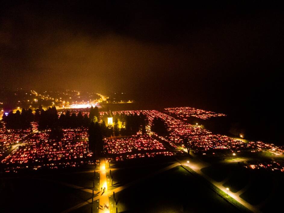 FOTO Impozantni prizori koprivničkog groblja iz zraka u večernjim satima blagdana Svih svetih