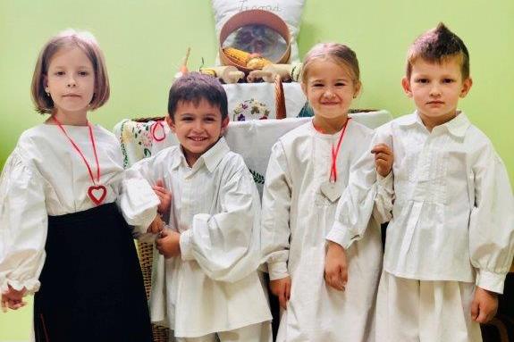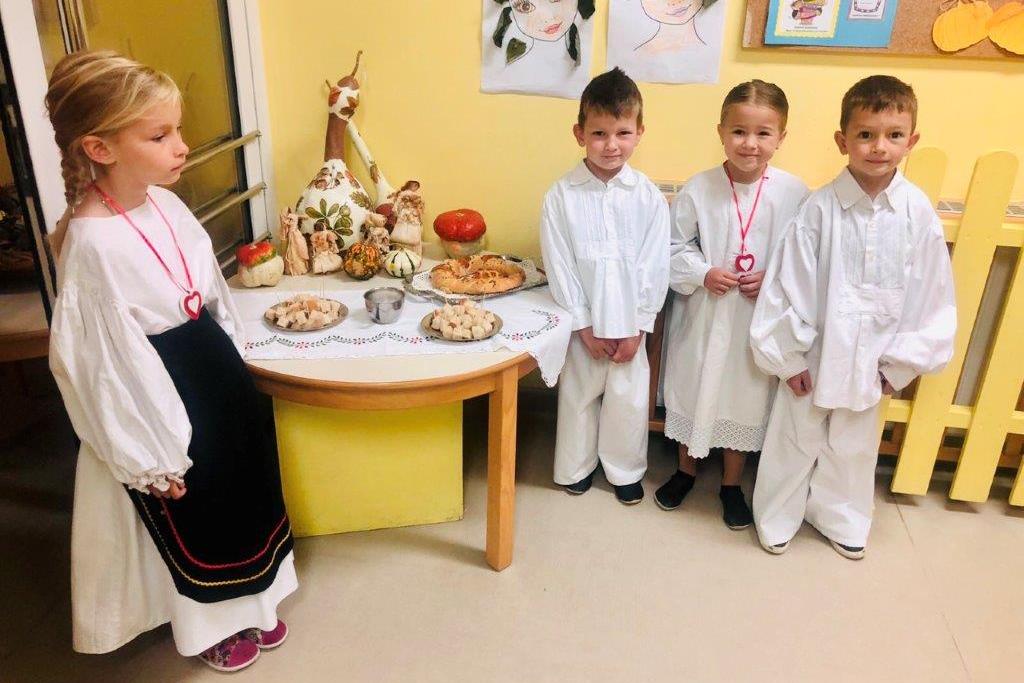 Velečasni Igor Radašić posvetio je domaće kolače, peciva i kruh koje su pripremili roditelji vrtićaraca, a teta i mališani su uveličali ovaj predivan dan noseći narodne nošnje koje im je za tu priliku posudio KUD Zrin.
