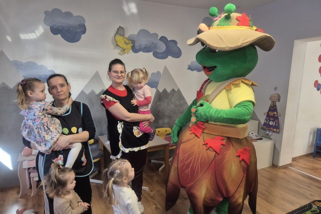 Posebnu radost donio je gost iznenađenja – maskota Mirka Kompostirka. Kroz igru, ples i smijeh, djeca su učila o važnosti kompostiranja i očuvanja okoliša, a susret s Mirkom dodatno je obogatio radionicu i učinio je još zabavnijom i poučnijom.