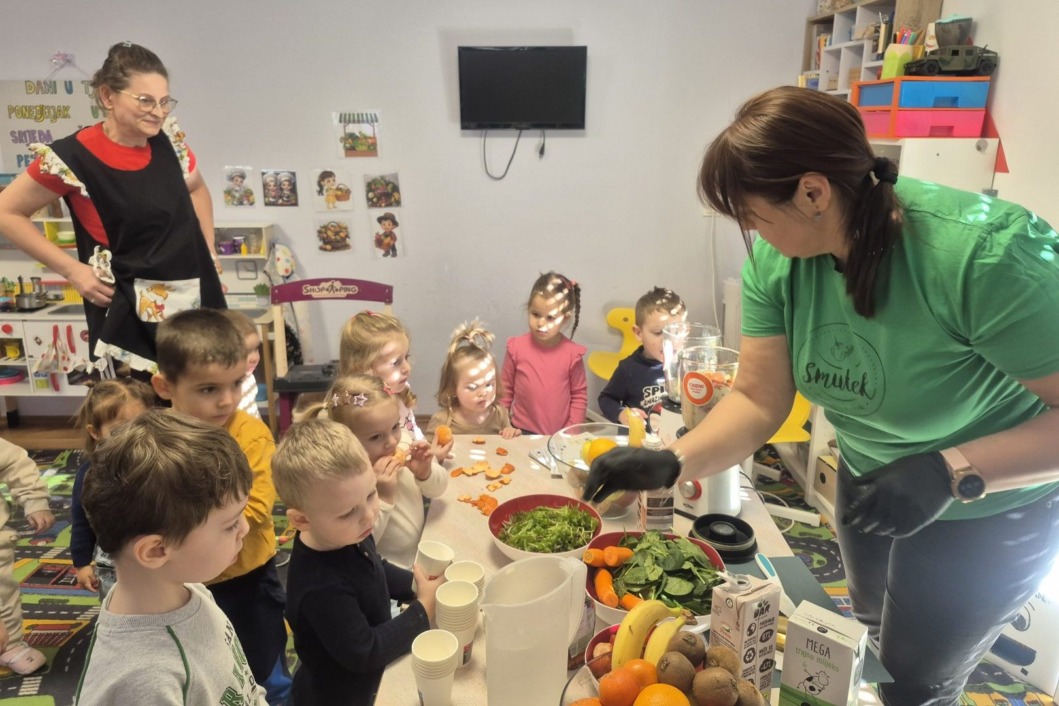 U srijedu je u obrtu za čuvanje djece Potica i Žirafa u Koprivnici, održana vesela i poučna Smutek radionica zdravog doručka.