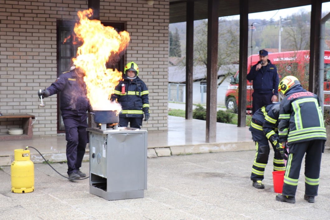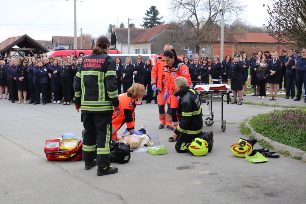 Nakon postrojavanja, uslijedila je pokazna vježba u izvedbi ženskih operativnih članica DVD-a Rasinja, domaćina ovogodišnjeg skupa. U vježbi su prikazale gašenje požara unutarnjom navalom, spašavanje i izvlačenje zatočene osobe te postupak reanimacije, a u završnom dijelu uključila se i županijska hitna medicinska služba, čime je prikazana izvrsna suradnja žurnih službi u stvarnim intervencijama.