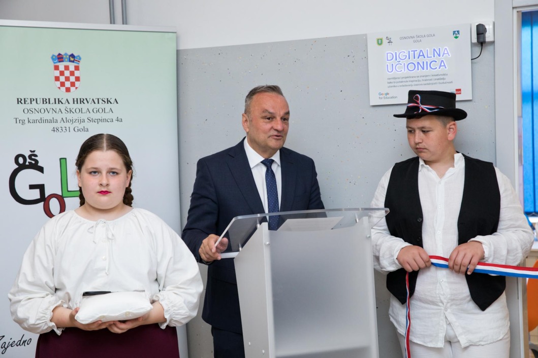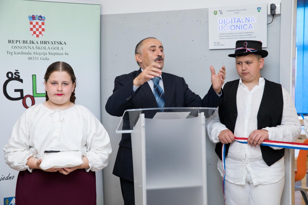“Izuzetno mi je zadovoljstvo i čast što svi zajedno možemo obilježiti jedan ovako poseban trenutak za našu školu, našu općinu i županiju, ali i za budućnost obrazovanja”, istaknula je u pozdravnom govoru ravnateljica Osnovne škole Gola Violeta Pranjić te dodala kako digitalna učionica nije samo prostor, već je simbol promjene, napretka i hrabrog koraka prema obrazovanju koje prati vrijeme u kojem živimo.