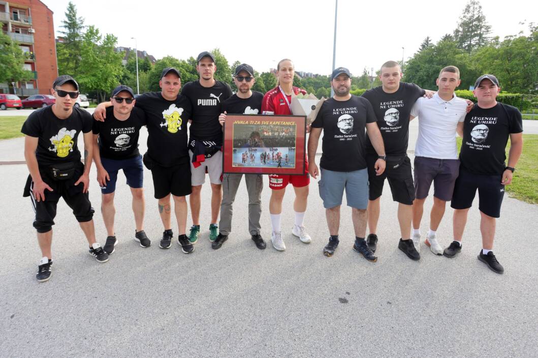 Pred sam kraj utakmice ispred dvorane se začula navijačka pjesma, a današnji dan, osvajanje 26. naslova kao ni oproštaj od njihove kapetanice Dragice Džono Kronikusi nisu htjeli propustiti. Pripremili su tako ispred dvorane splet navijačkih pjesama, malu bakljadu te uručili poklon uz puno emocija.