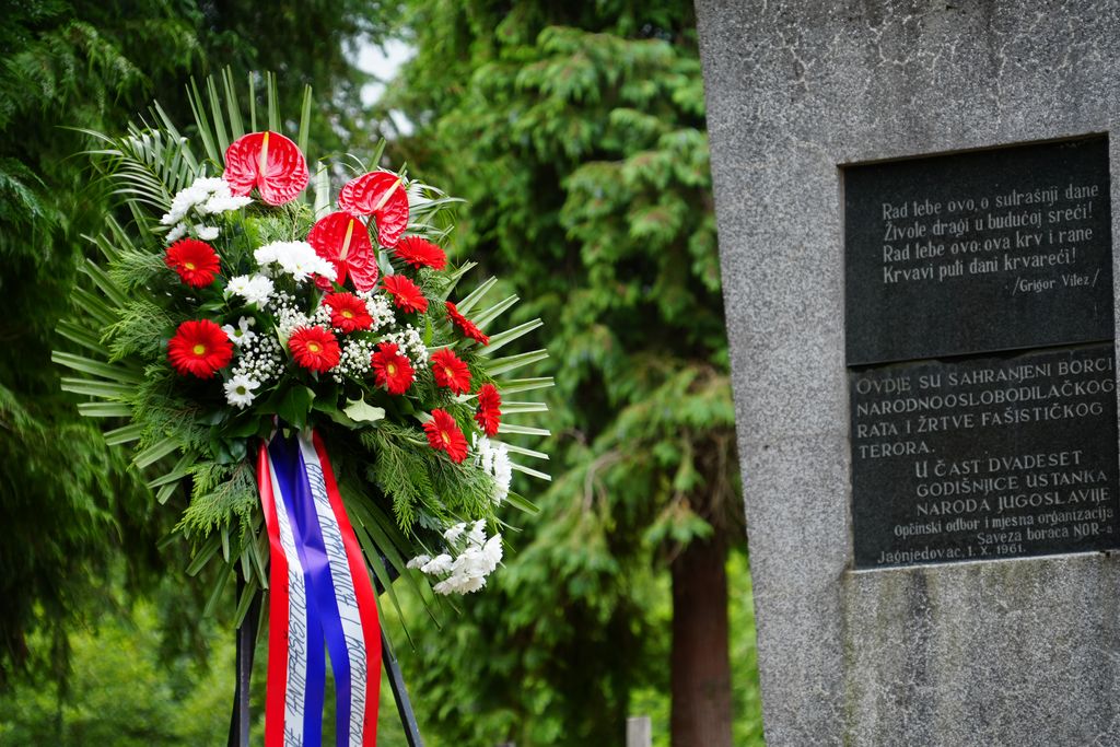 Polaganjem vijenaca i paljenjem svijeća odana je počast svima koji su tijekom Drugog svjetskog rata ustali protiv fašizma i totalitarizma.