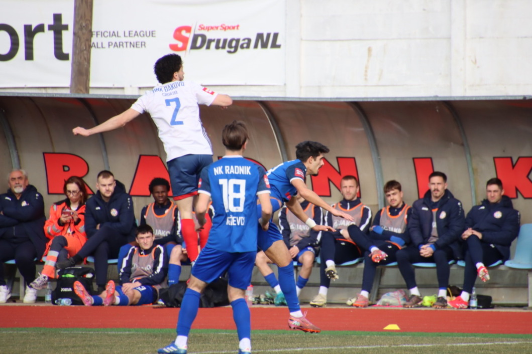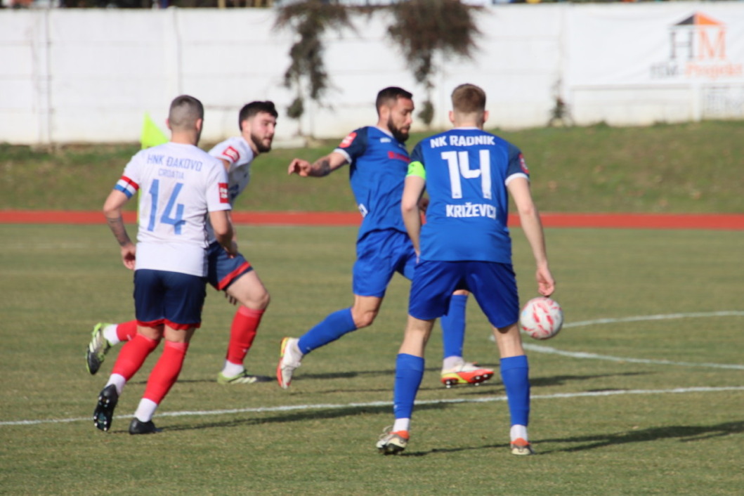 Zbog za vikend nepovoljnih uvjeta i snijegom prekrivenog nogometnog terena na križevačkom stadionu, utakmica 16. kola Druge nogometne lige između Radnika i Đakova odigrana je u utorak.