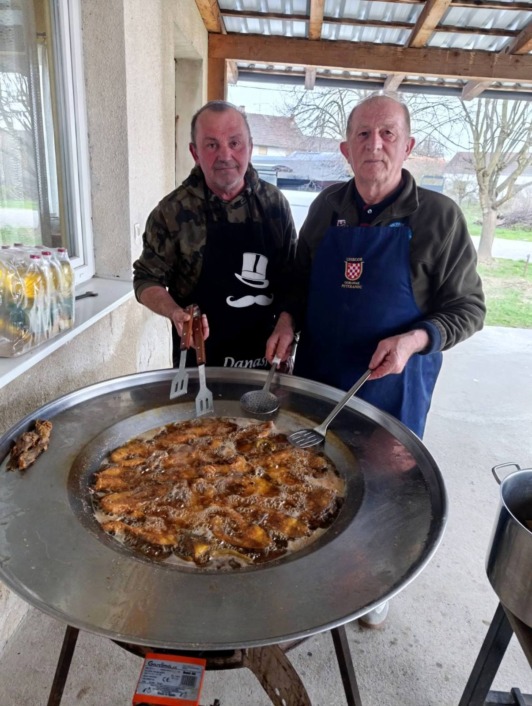 Uz ugodno druženje, okupljeni su imali priliku uživati u ribi koju su, uz pomoć vrijednih mještanki, pripremili članovi Športsko-ribolovnog kluba Patuljan.