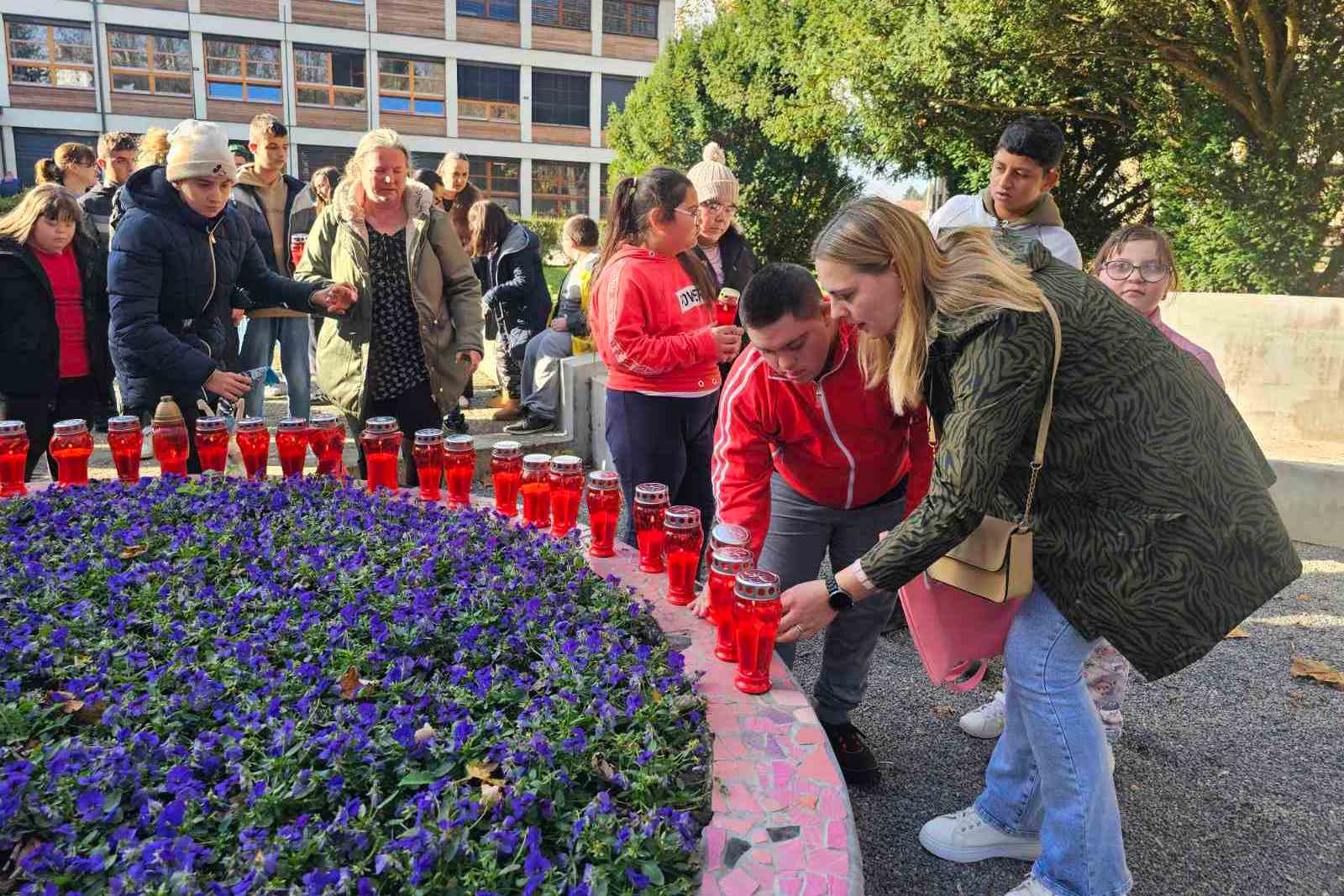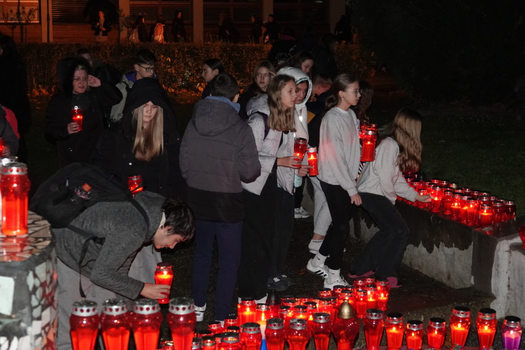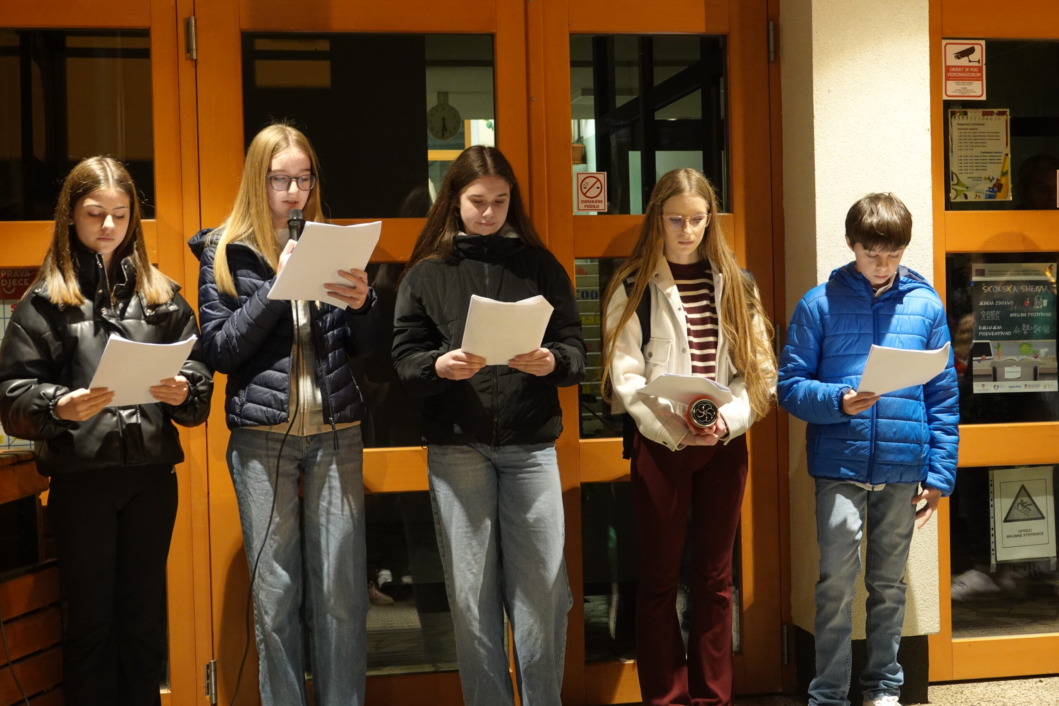 U znak sjećanja na sve žrtve Domovinskog rata, učenici, nastavnici, roditelji i predstavnici braniteljskih udruga zapalili su svijeće u parku pokraj škole.