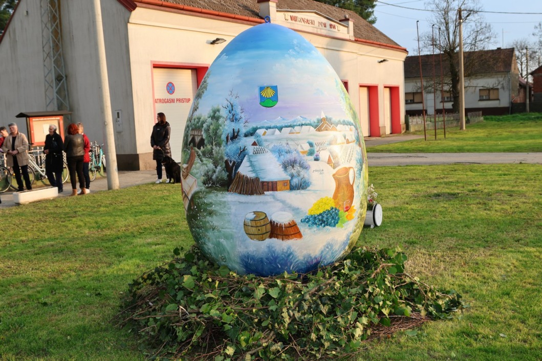 U općini Koprivnički Bregi u subotu je postavljena velika pisanica oslikana u maniri naive koju su mještanima zajednički poklonili Općina i Turistička zajednica Koprivničko-križevačke županije.