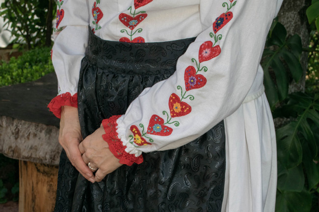 Ženske nošnje se sastoje od bijelih pamučnih vezenih suknji i košulja te crnih pregača, a glava je pokrivena crvenom vezenom maramom takozvanom šamijom.