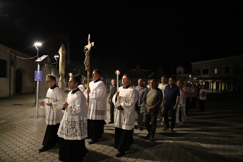 Nakon mise, relikvija Krvi Kristove u svečanoj je procesiji prenesena u župnu crkvu te izložena na štovanje. Nakon pjevanih pohvala svetoj Krvi, litanija Krvi Kristove i molitve Večernje započela je molitva Getsemanske ure.