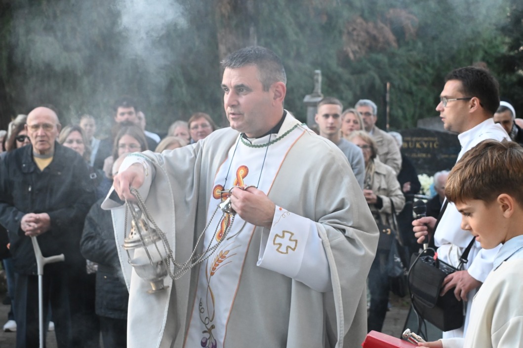 FOTO-VIDEO Blagdan Svih svetih: župnik Dominik Vukalović blagoslovio koprivničko groblje