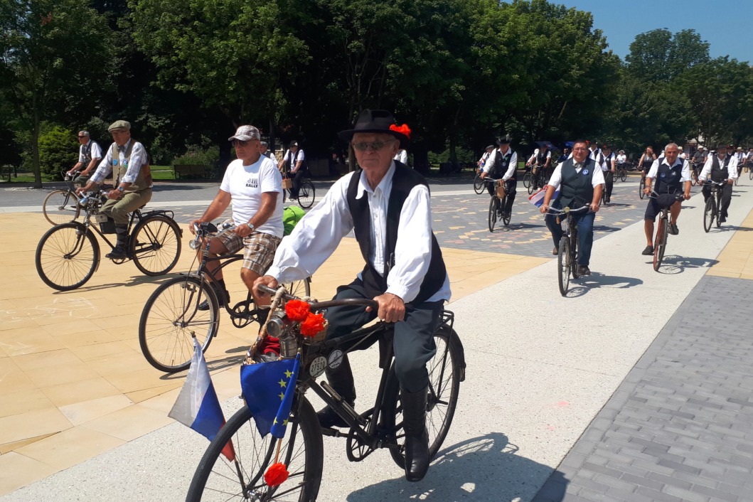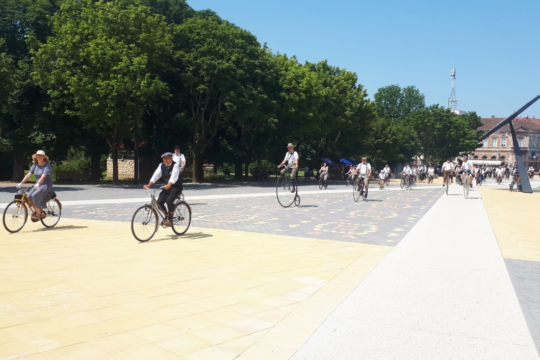 Na Zrinskom trgu u centru grada okupili su se brojni ljubitelji starih bicikala, a pozdravio ih je koprivnički gradonačelnik Mišel Jakšić.