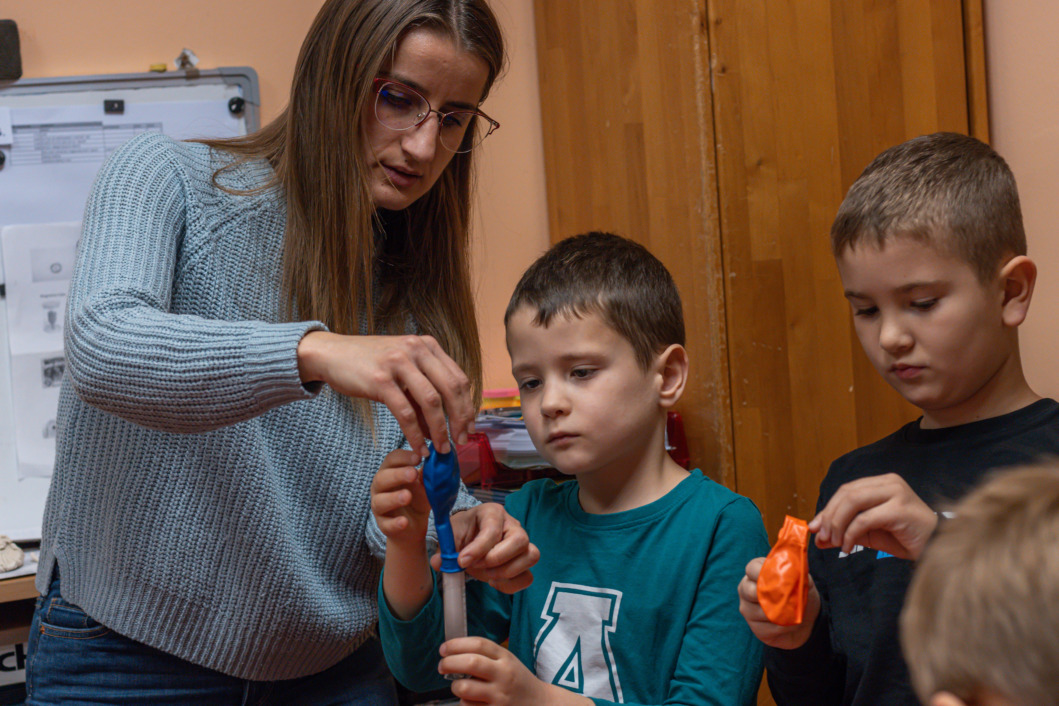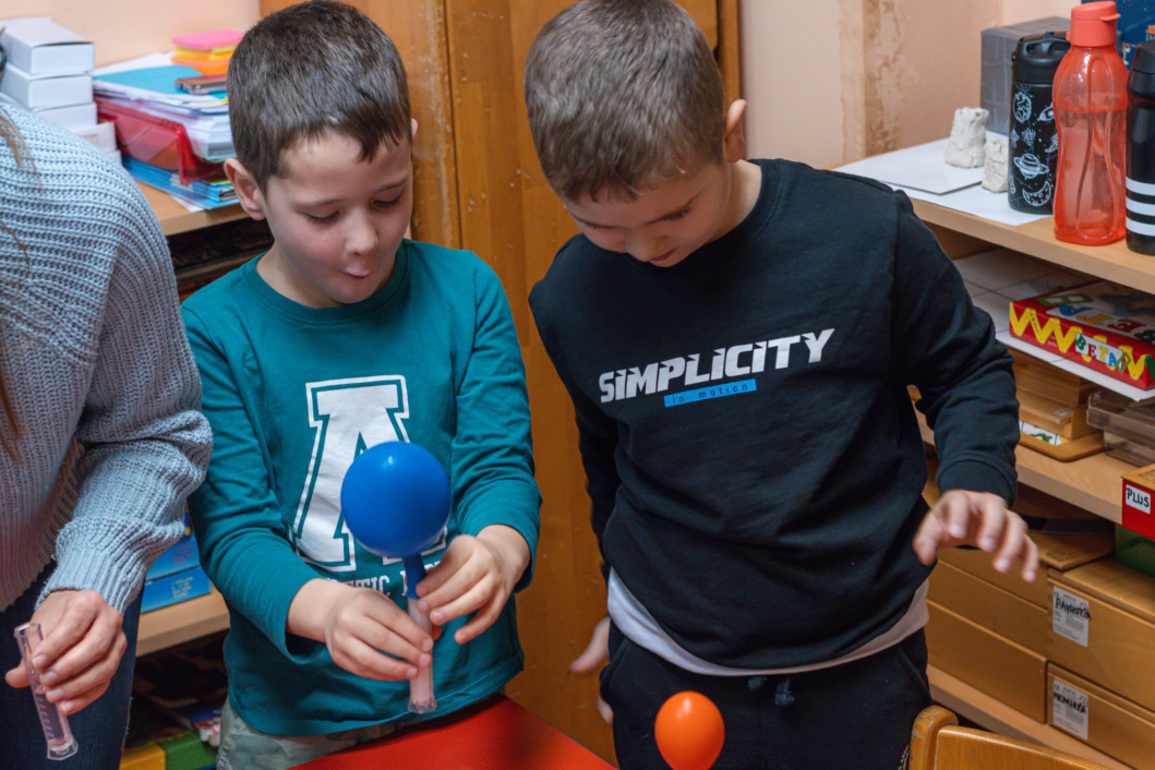 Nakon što su mališani stigli, zauzeli svoje pozicije i podijelili se u grupe voditeljica ove radionice, Bojana Kežman i Katarina Dergez, inače i psihologinja u Dječjem vrtiću Tratinčica, objasnile su im kako će napuhati balon, a da ga ne stavljaju u usta i da ne pušu zrak u njega.