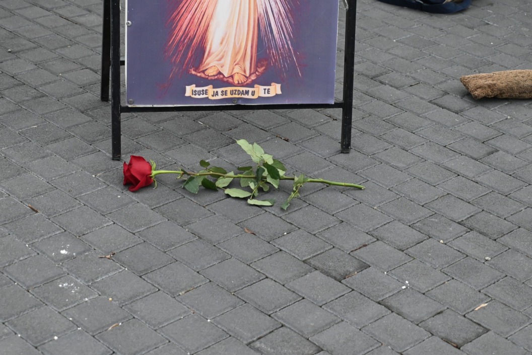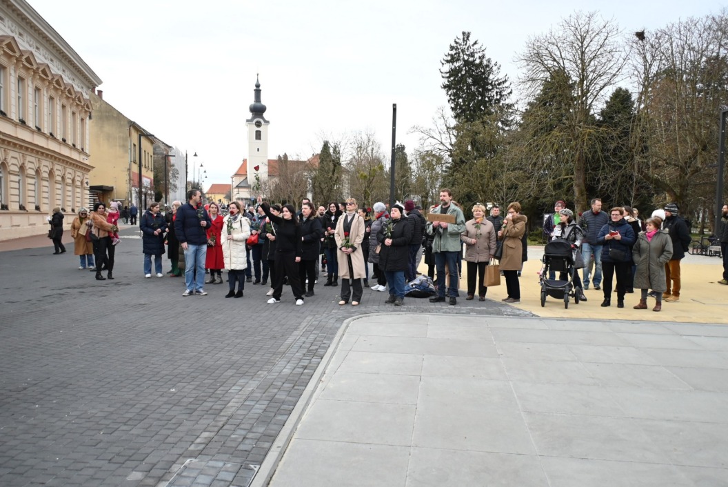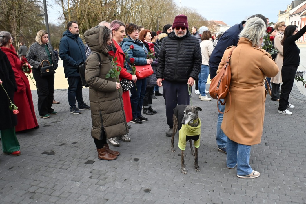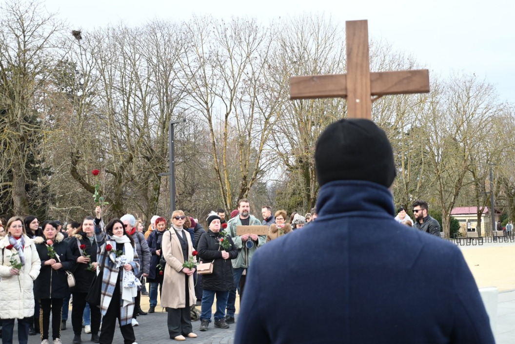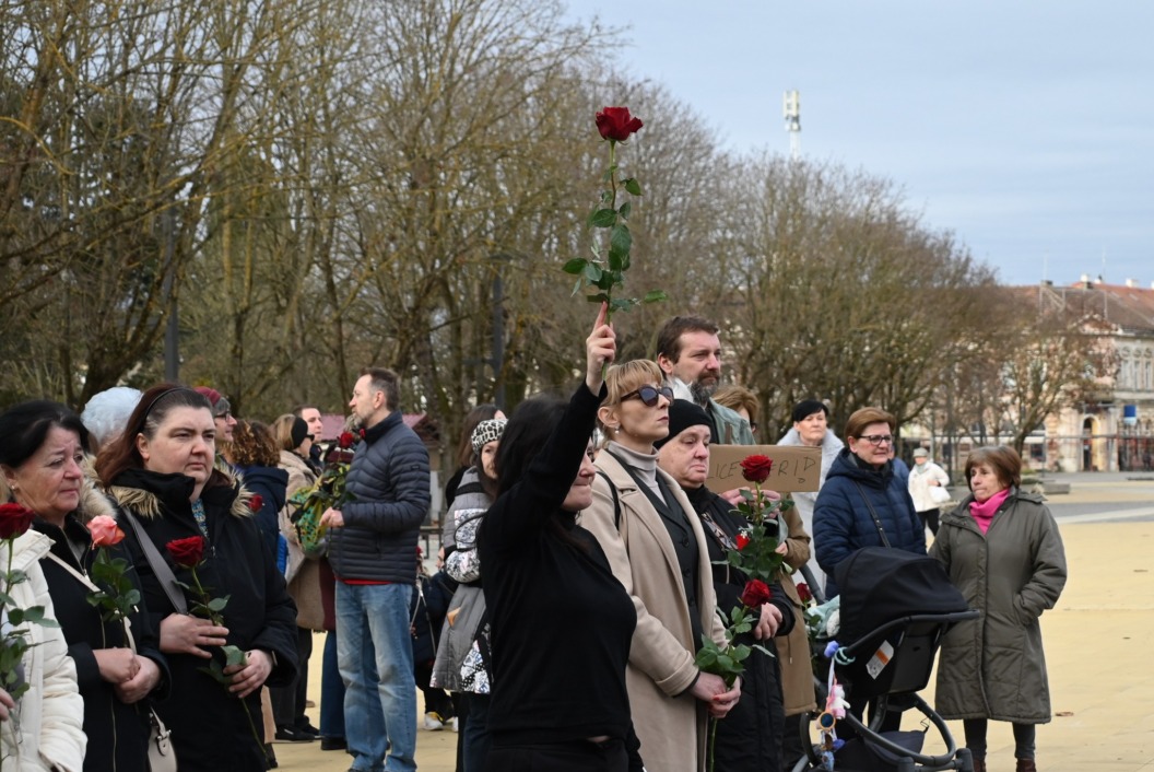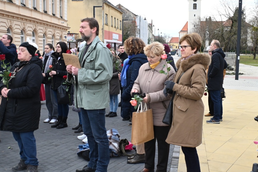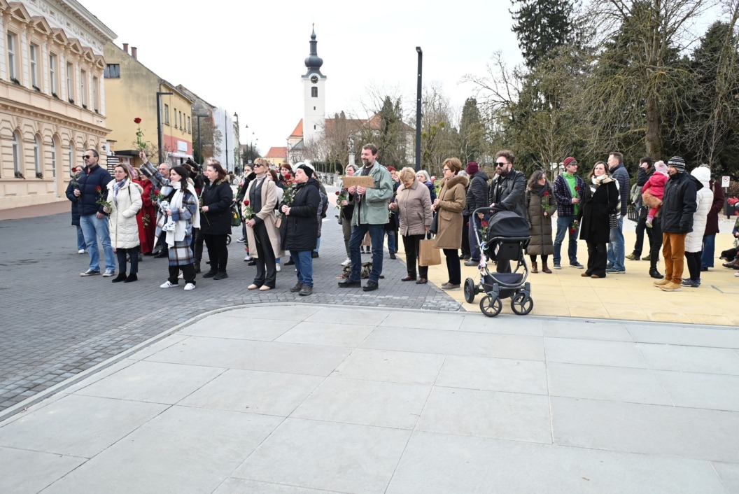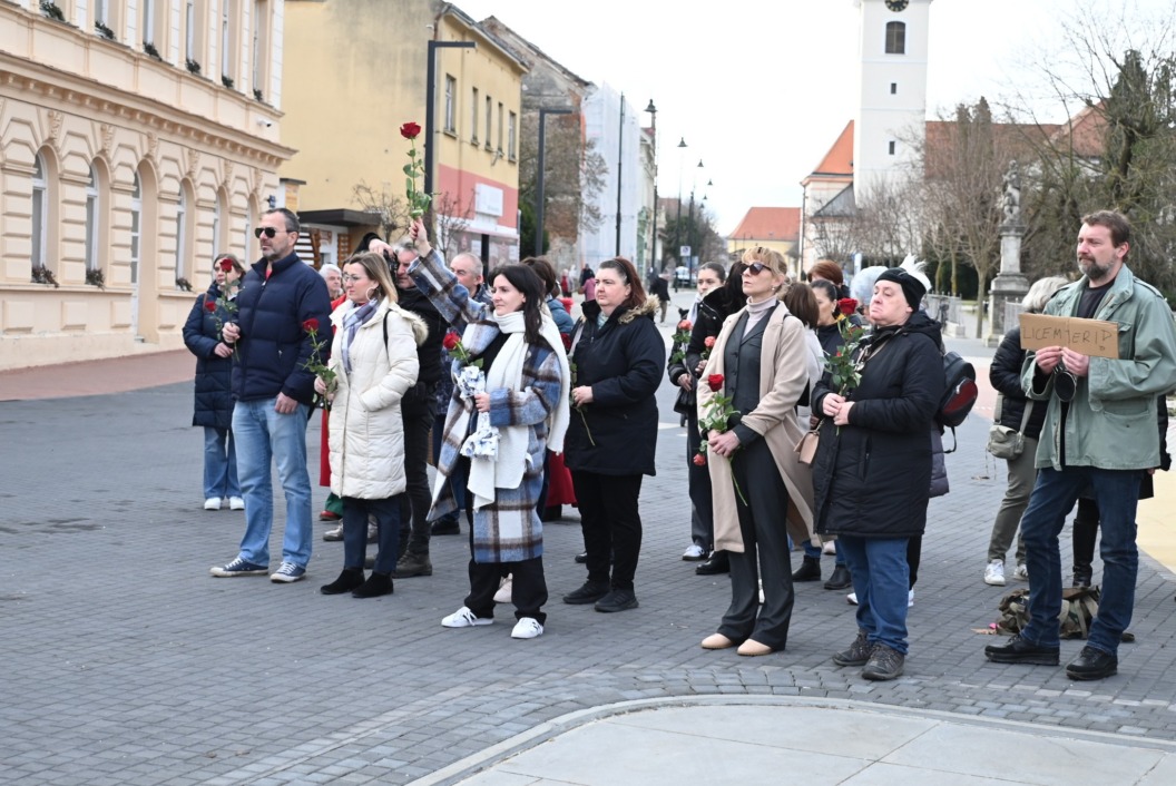 Molitva na glavnom gradskom trgu započela je točno u 9 sati, a u isto vrijeme su se, i to u većem broju, okupili protuprosvjednici koji su nosili ruže. Naime, riječ je o skupnoj performativnoj akciji ‘Tiha misa’ pod vodstvom umjetnice Arijane Lekić-Fridrih i udruge Domino.