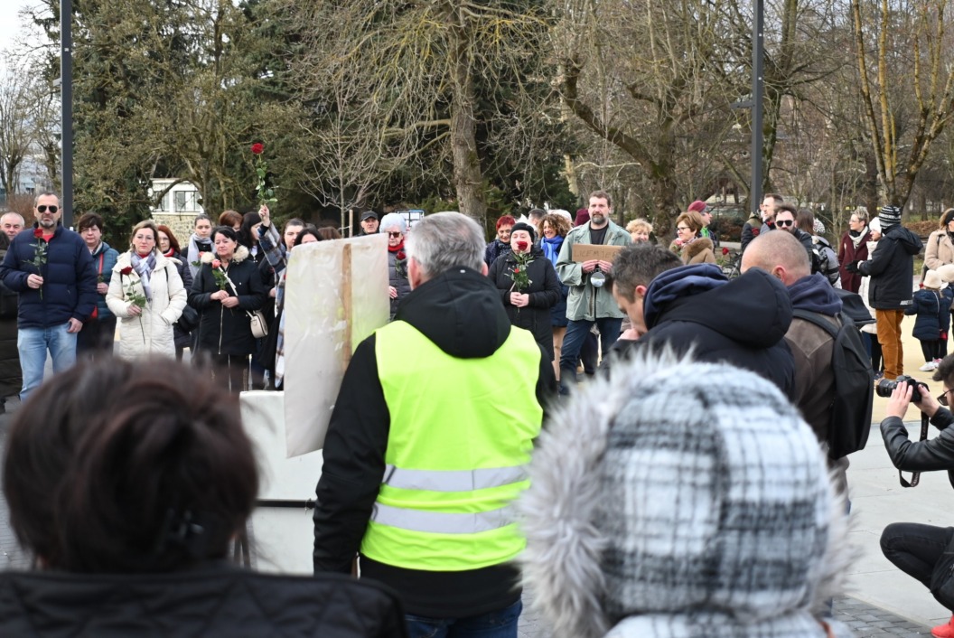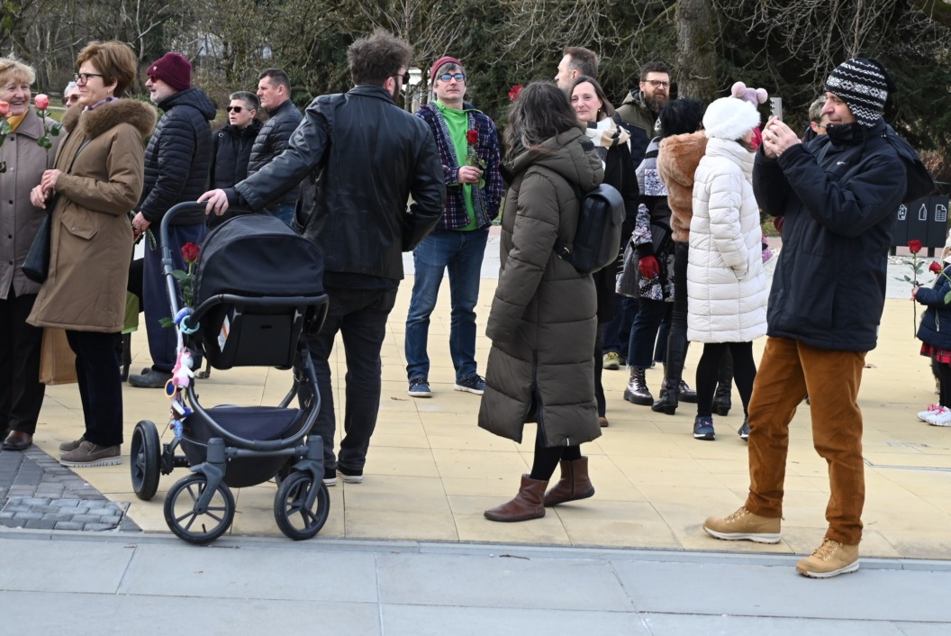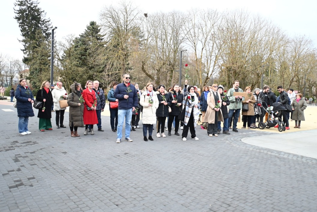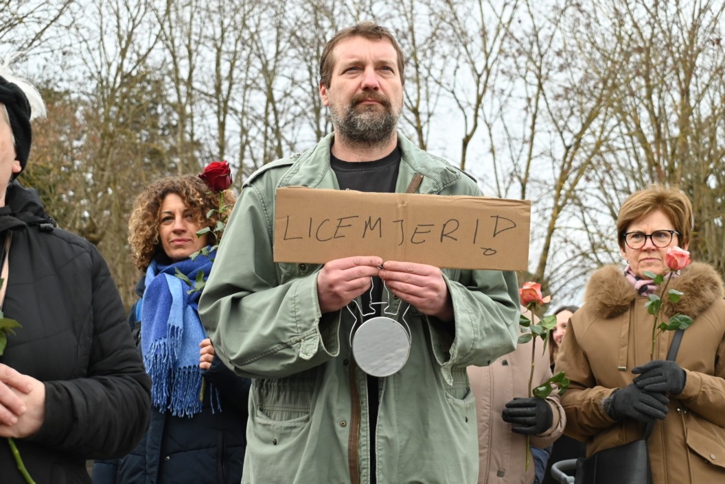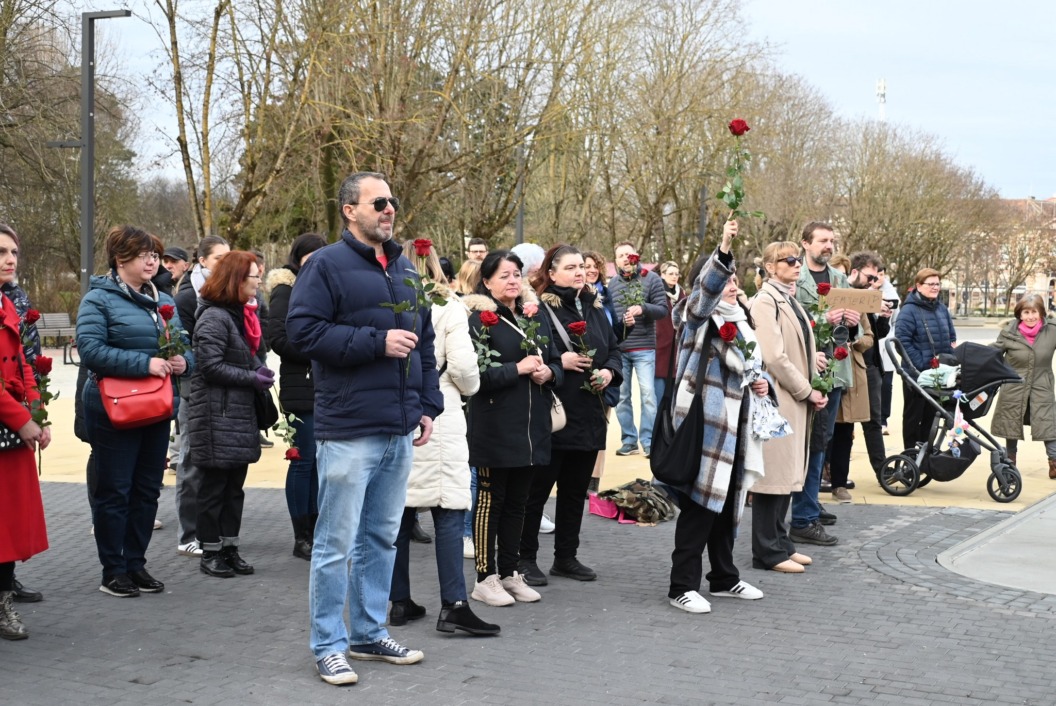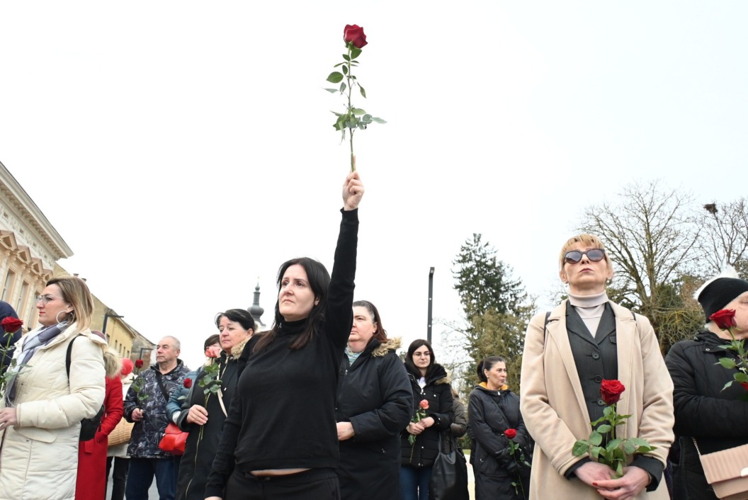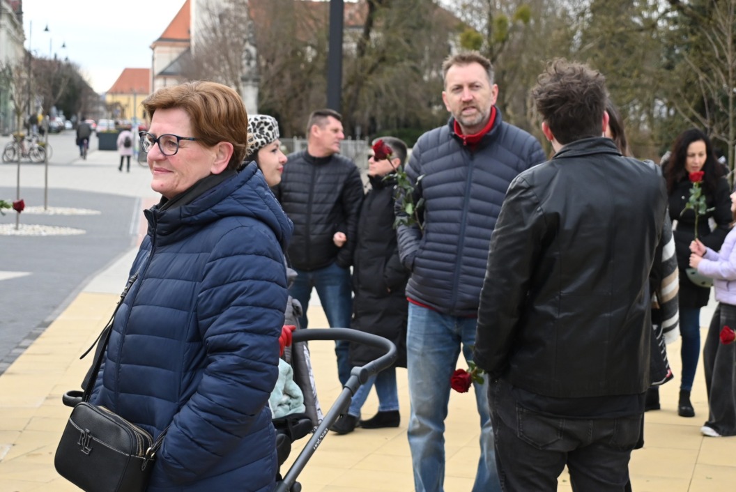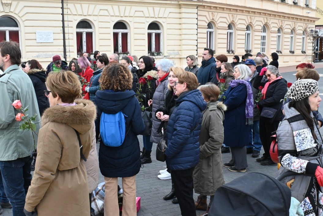 Molitva na glavnom gradskom trgu započela je točno u 9 sati, a u isto vrijeme su se, i to u većem broju, okupili protuprosvjednici koji su nosili ruže. Naime, riječ je o skupnoj performativnoj akciji ‘Tiha misa’ pod vodstvom umjetnice Arijane Lekić-Fridrih i udruge Domino.