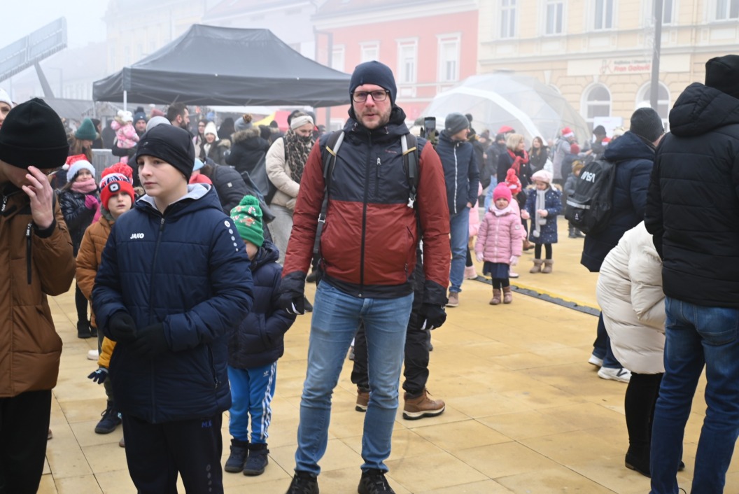 Unatoč magli i hladnoći, velik broj najmlađih Koprivničanaca okupio se danas, na Staru godinu, u pratnji roditelja, baka i djedova, teta… kako bi u podne na Zrinskom trgu dočekao Novu godinu.