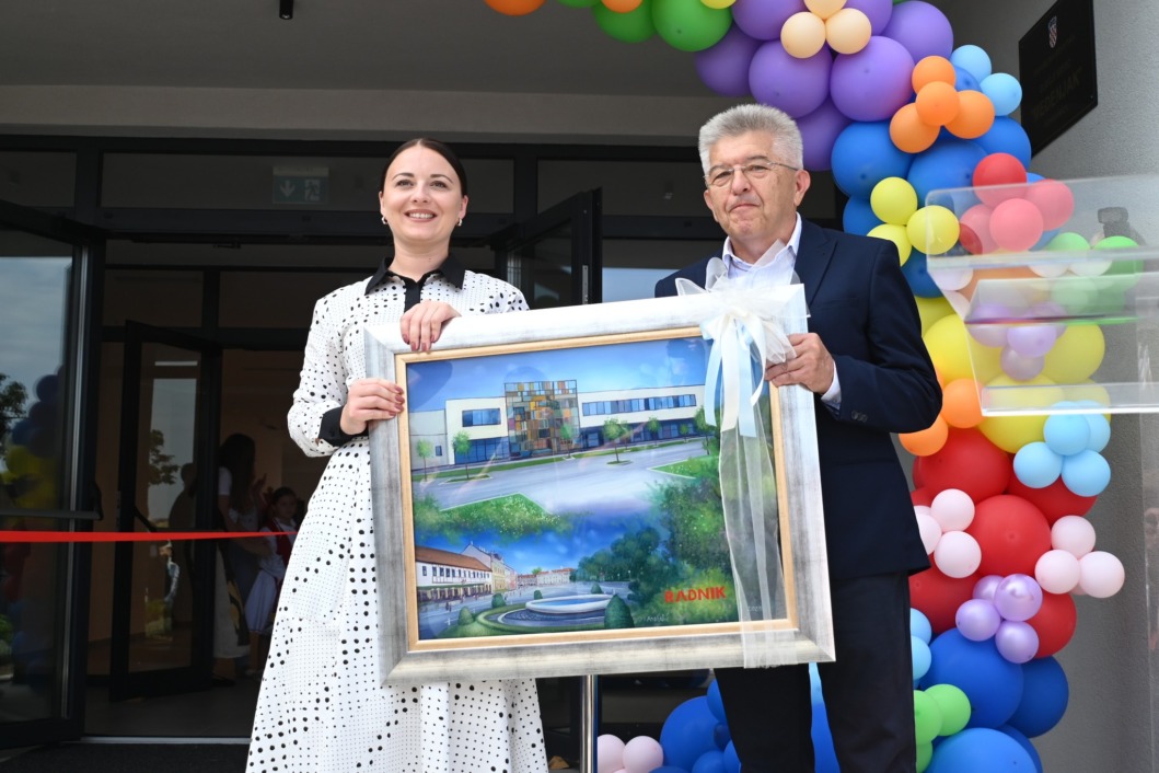 Nakon uvodnih govora, Ivani Antolić, ravnateljici vrtića Medenjak Darko Jambreković iz tvrtke izvođača, Radnik, uručio je prigodni poklon, sliku poznatog umjetnika Ivana Andrašića koja prikazuje novo zdanje dječjeg vrtića i centra Koprivnice.