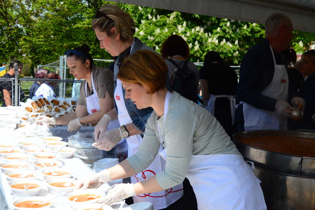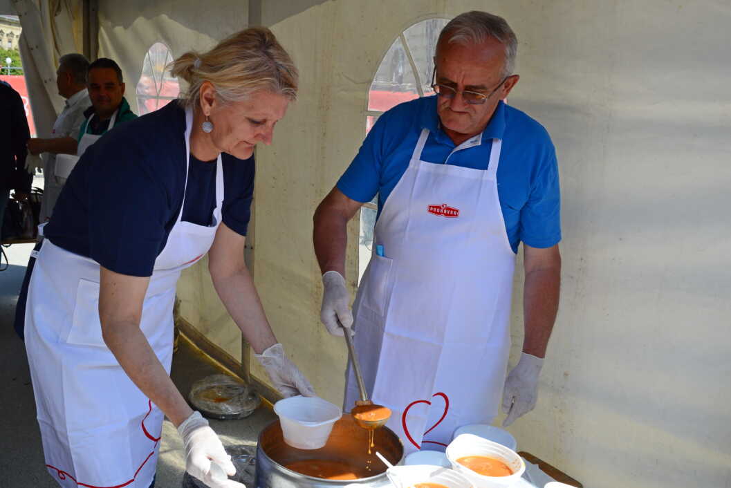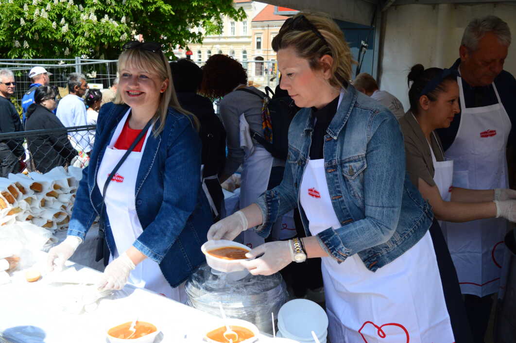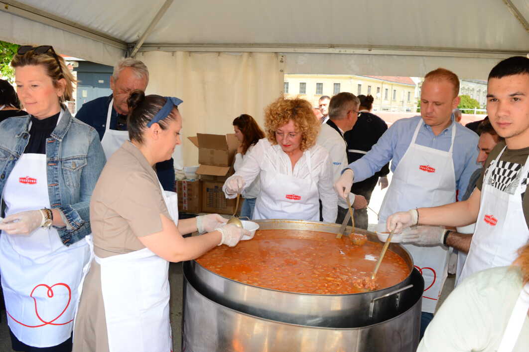 Podjela ukusnog graha, 3000 litara, organizirana je ispred koprivničke tržnice, a za to da nitko ne ostane gladan pobrinuli su se Podravkini majstori kuhinje.