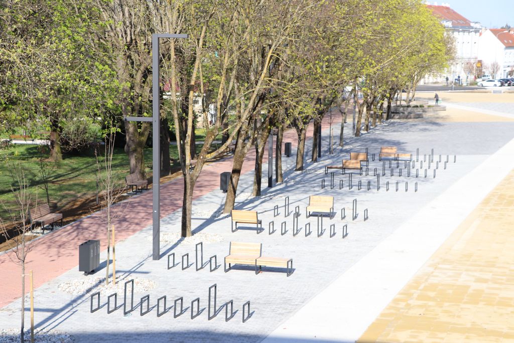 Koprivničko je središte obnovom dobilo potpuno novi izgled, i to fontanu s posebnim osvjetljenjem ispred vijećnice, više zelenila, nove zone s klupama i parkinzima za bicikle, nove koševe za smeće, a postavljen je i novi spomenik biciklu.