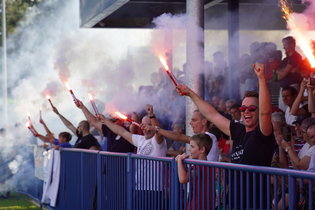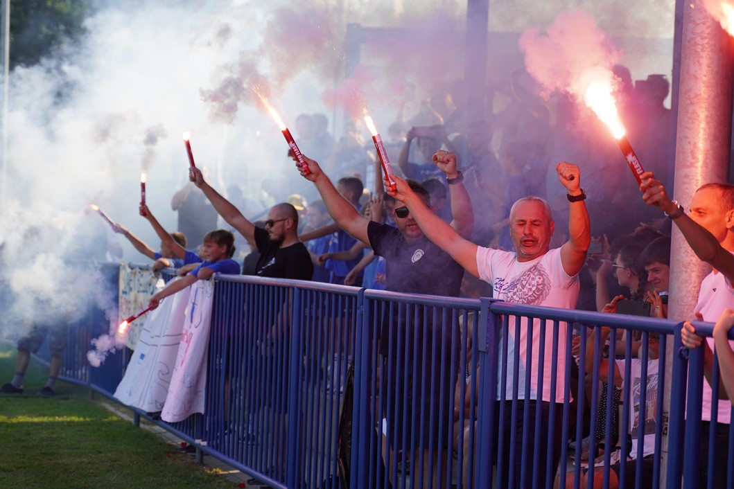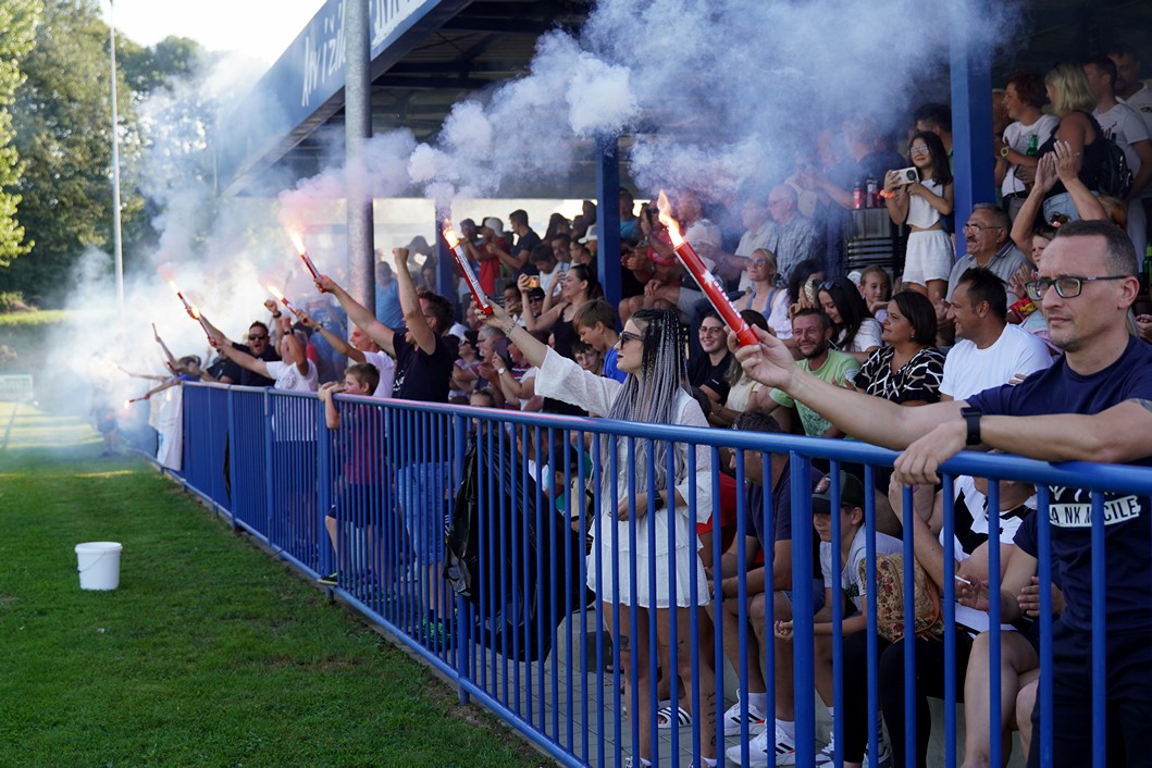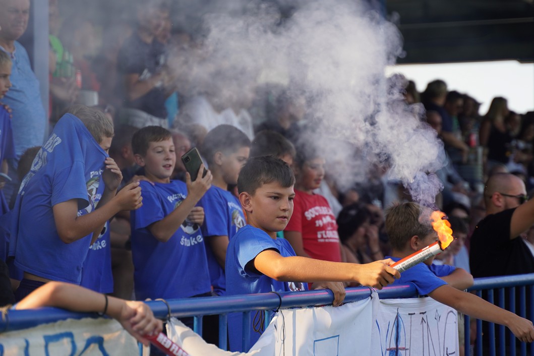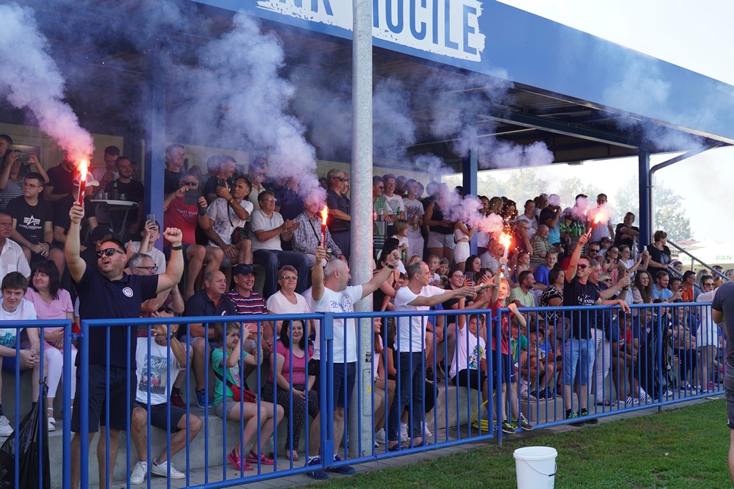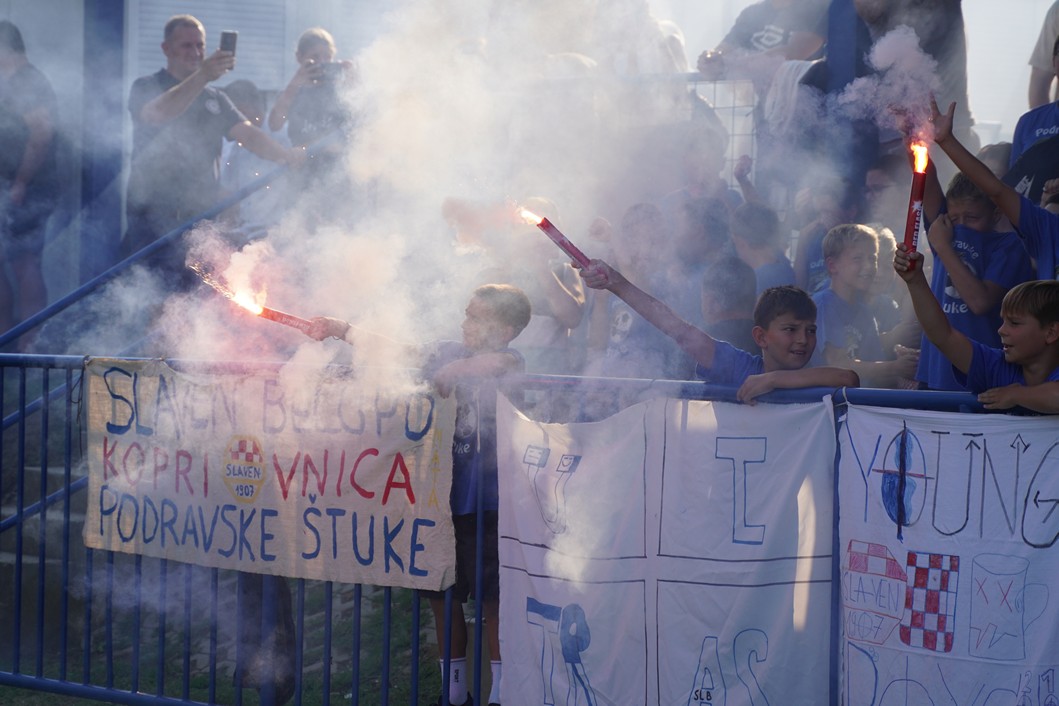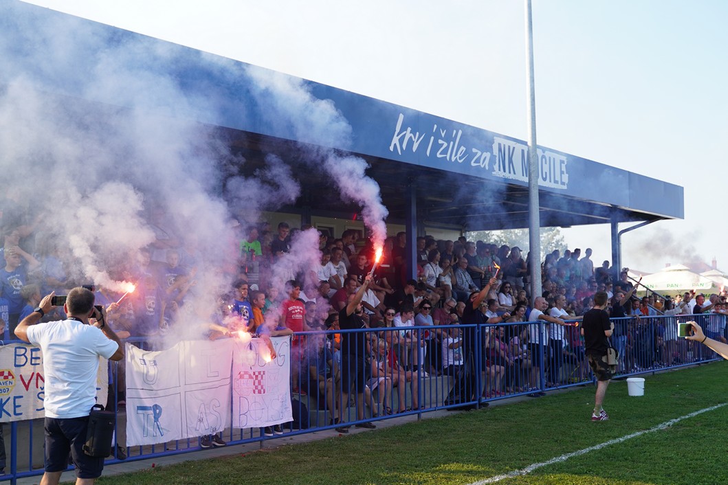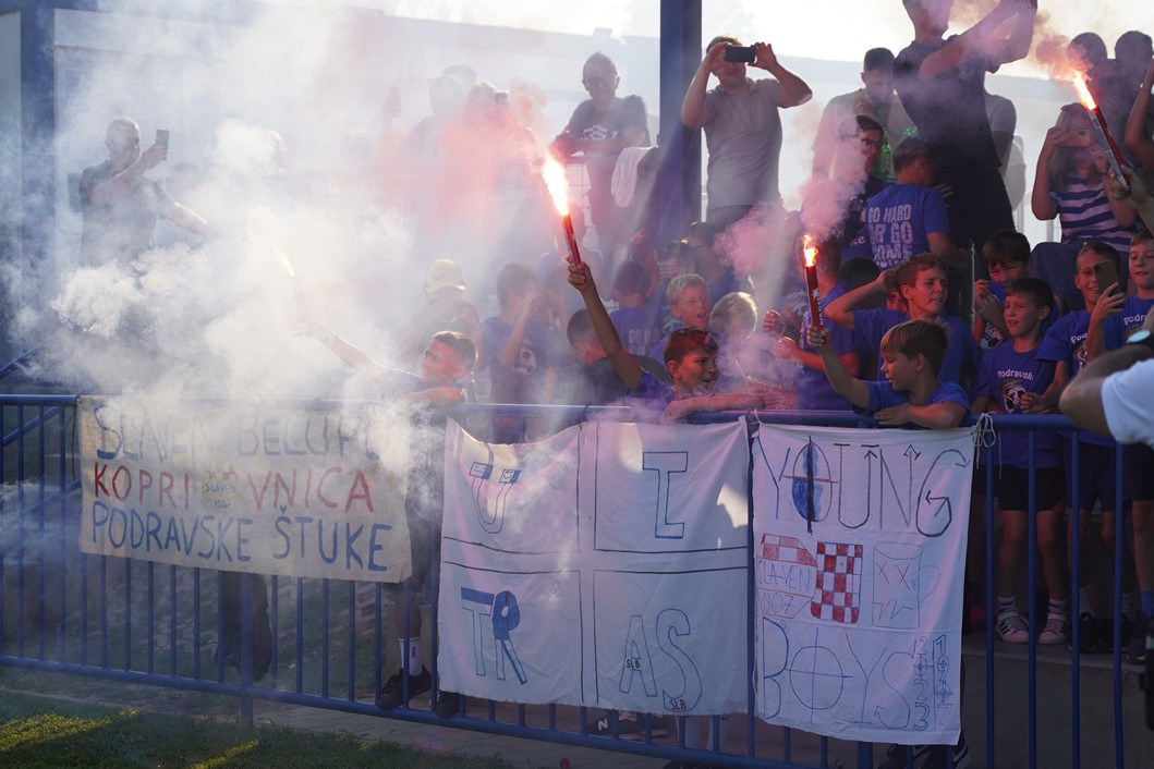 Slavenaše su došle podržati Podravske štuke, dok su domaći navijači u 20. minuti priredili bakljadu u povodu 20. obljetnice osnutka NK Močila.