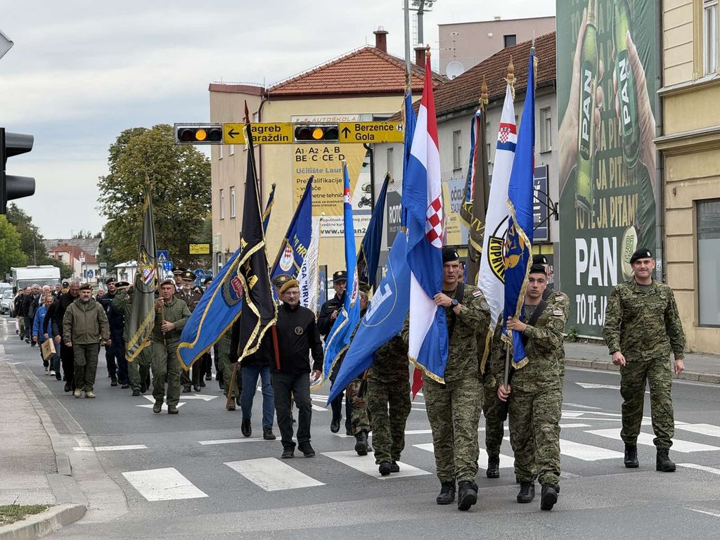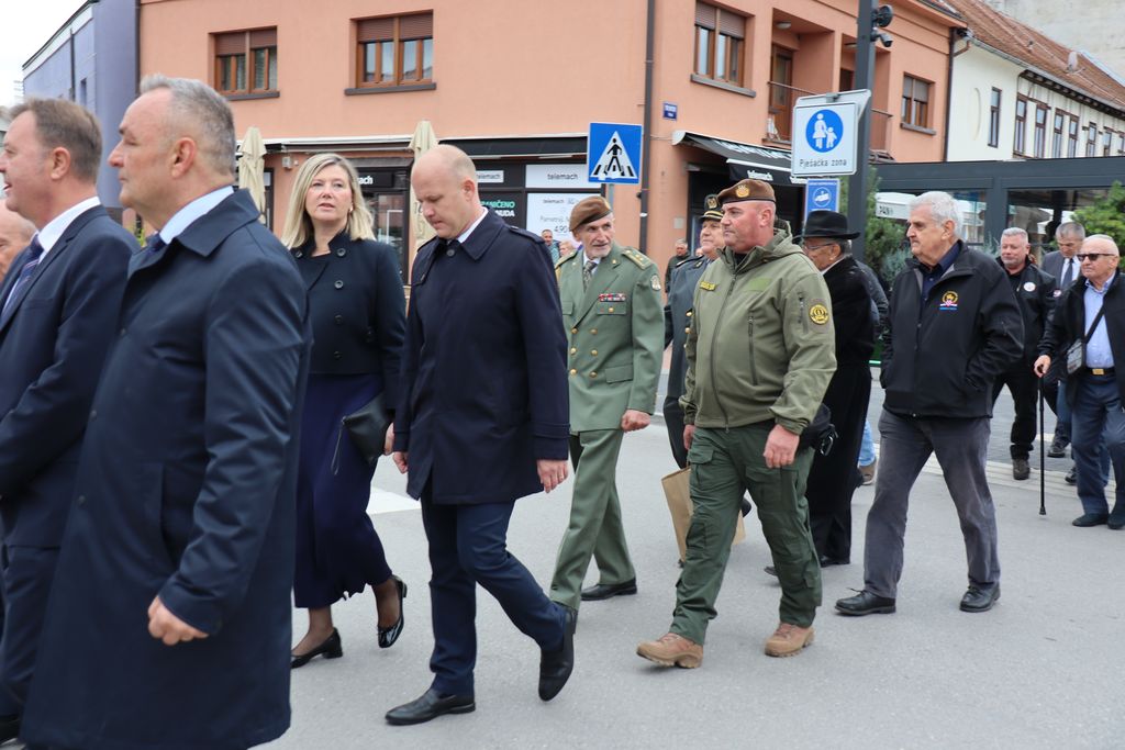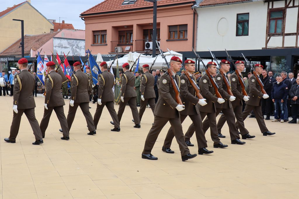 Nakon blagoslova uslijedio je svečani mimohod pripadnika ratnih postrojbi Hrvatske vojske, policije i udruga proizašlih iz Domovinskog rata od bivše Vojarne do Spomenika hrvatskoj slobodi za branitelje iz Domovinskog rata na Florijanskom trgu.