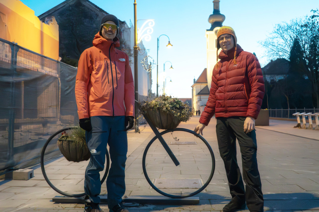 Možete ih prepoznati po svijetlim narančastim, odnosno crvenim jaknama i dobro natrpanoj, ali kompaktno organiziranoj prtljazi koja uključuje nekoliko torbi, svu potrebnu opremu i – skije. Oni su Simon Hiltli i Elvis Zapusek. Svoje dogodovštine na ovom putu kojeg će pamtiti za života objavljuju na društvenim mrežama, odnosno Instagram profilima alpine.joker i eliaskardamom.
