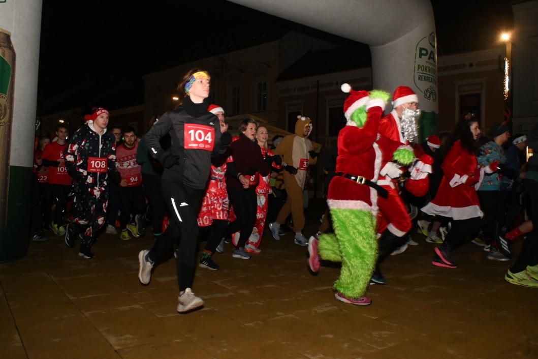 Točno u 17 sati označen je start utrke na pet kilometara, a šarena povorka trkača krenula je trasom koja je vodila kroz uži centar grada i gradski park. Utrka je bila prava blagdanska razglednica uz svjetlucave lampice Koprivničke bajke, glazbu, navijanje građana i osmijehe na licima sudionika. Iako je bilo onih koji su jurili prema cilju, naglasak je, kao i svake godine, bio na druženju, rekreaciji i dobroj zabavi.