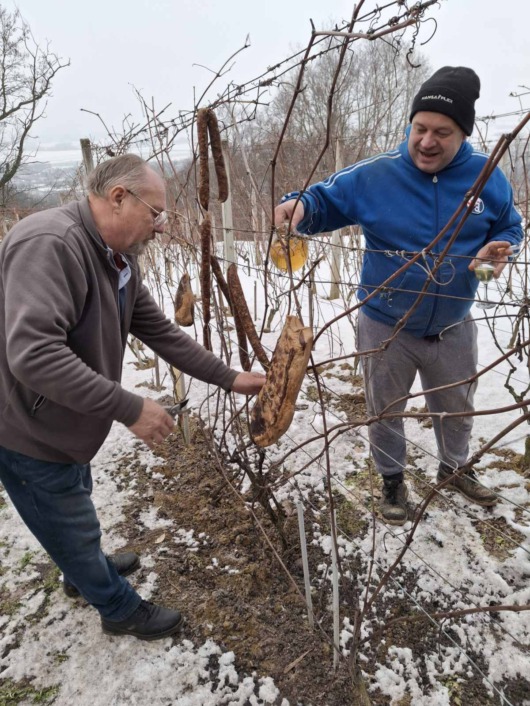 U vinogradu se u četvrtak okupio krug prijatelja, vinogradara i zaljubljenika u običaje Podravine, koji su zajednički obilježili početak nove vinogradarske godine. Prema starom običaju, trsovi su simbolično okićeni kobasicama i špekom i zaliveni vinom, uz želje za dobrim urodom, zdravim vinogradima i kvalitetnim vinom.