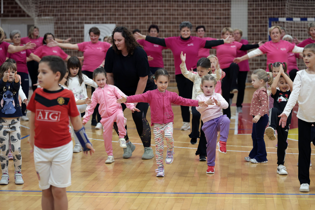 Pod vodstvom fizioterapeutkinje Mihaele Krčmar mali i veliki mještani zajedno su odradili vježbe koje Roze redovito izvode na svojim druženjima.
