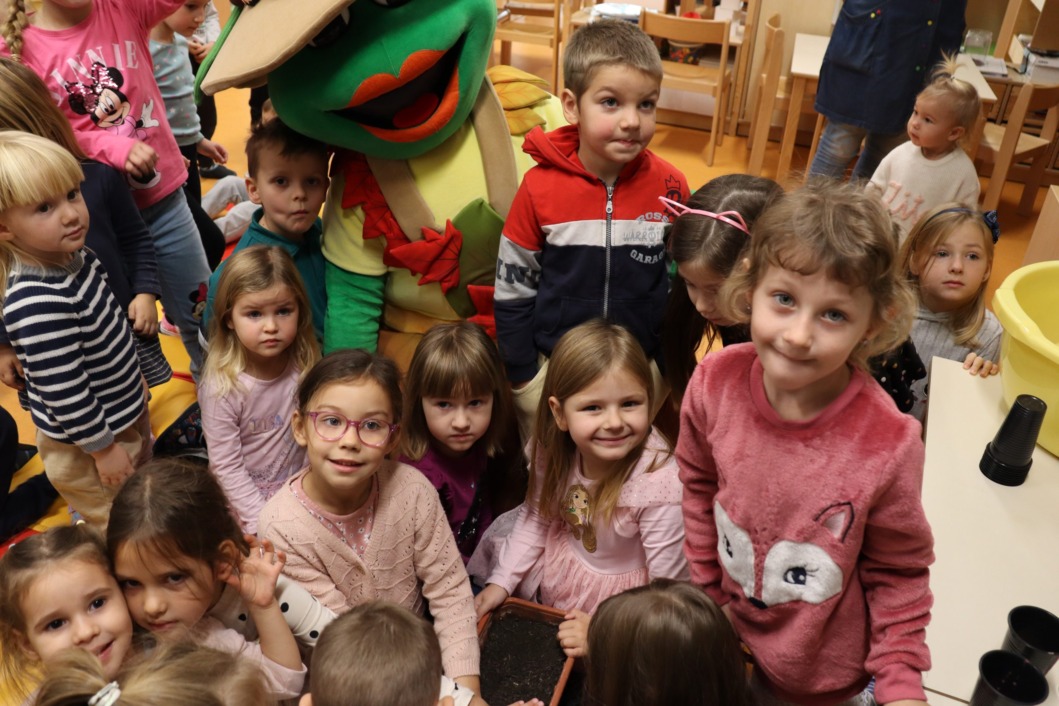 Mališani su se družili i s Mirkom Kompostirkom maskotom projekta o pravilnom razvrstavanju otpada i očuvanju okoliša koja im je kroz interaktivne igre približila važnost recikliranja i održivog načina života.