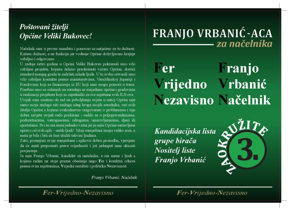 KANDIDACIJASKA LISTA GRUPE BIRAČA NOSITELJ LISTE FRANJO VRBANIĆ