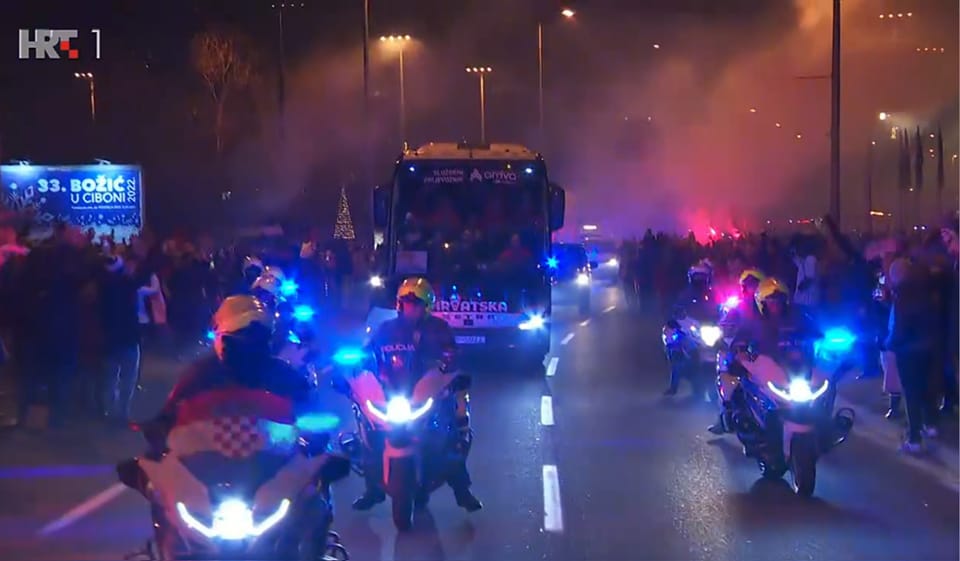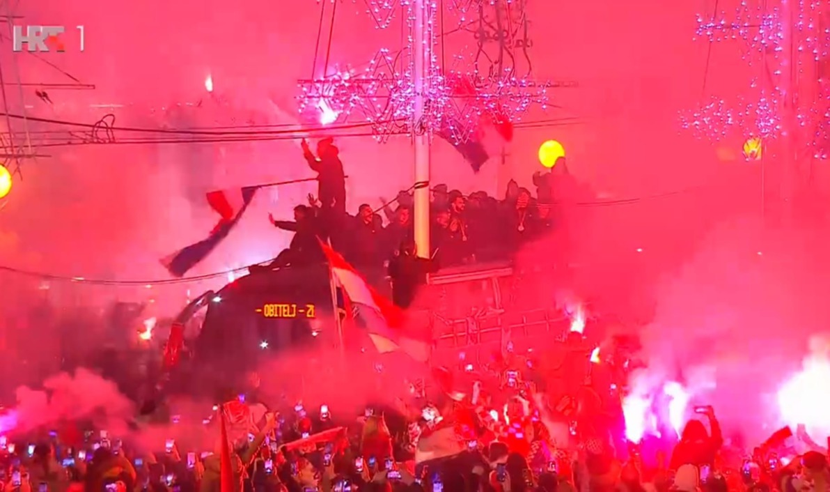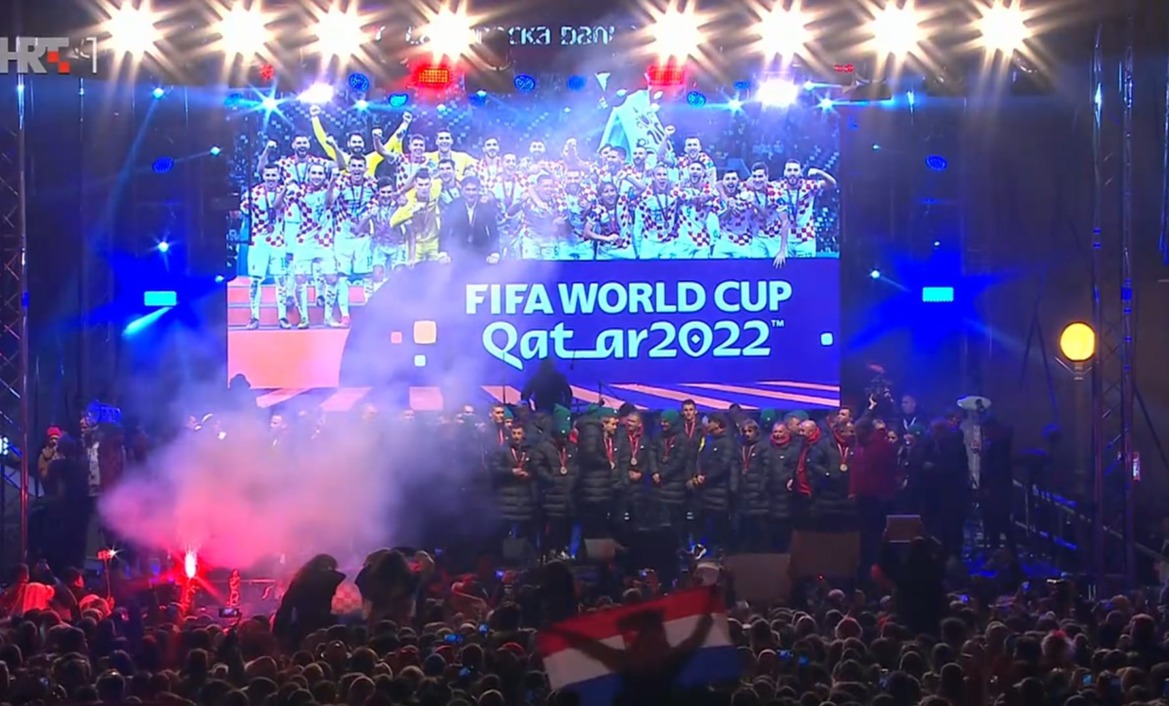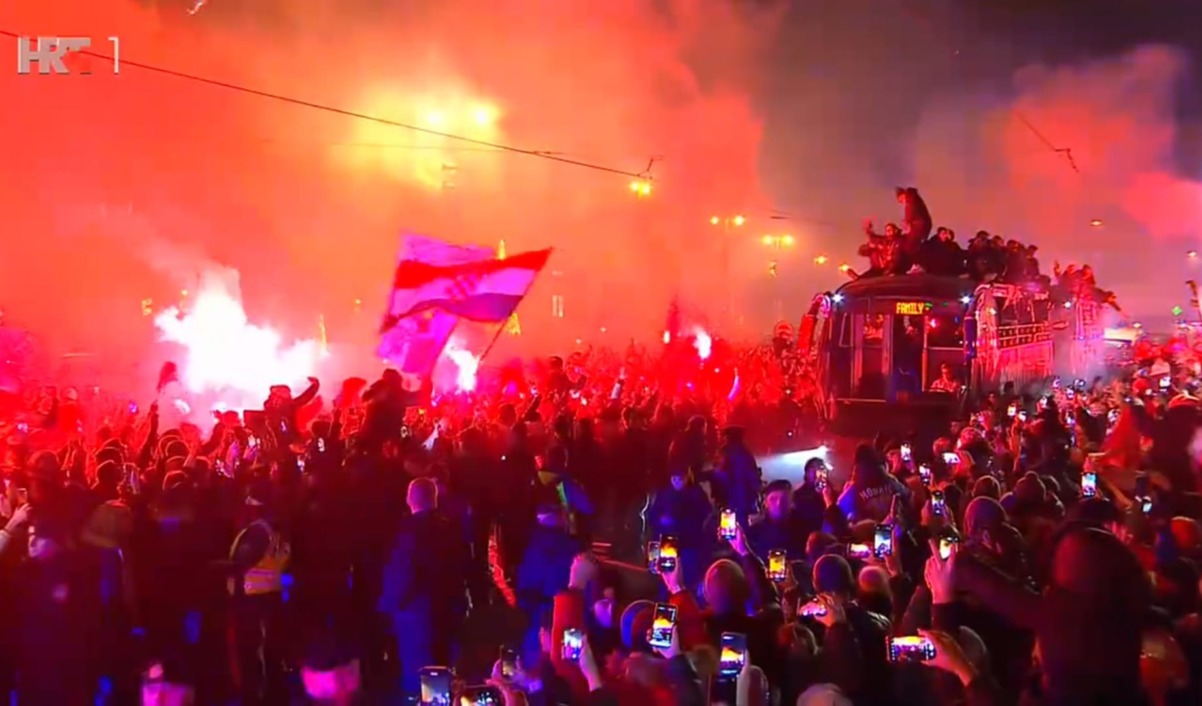 Veličanstven doček priredili su navijači hrvatskoj nogometnoj reprezentaciji na povratku sa Svjetskog prvenstva u Kataru gdje je osvojila broncu, ukupno treću medalju u šest nastupa.