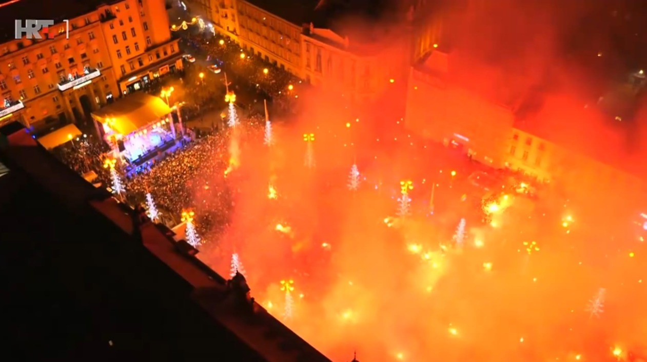 Na pozornicu su naši igrači izašli jedan po jedan uz ovacije prepunog trga i prilaznih ulica. Klapa Hrvatske ratne mornarice Sv. Juraj izvela je Lijepu našu, a potom je nastupilo Prljavo kazalište.