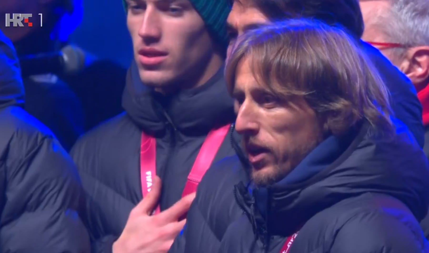 Onda su i igrači dobili riječ, prvi Marcelo Brozović, pa Joško Gvardiol i Luka Modrić koji je otpjevao ‘Zovi, samo zovi’.