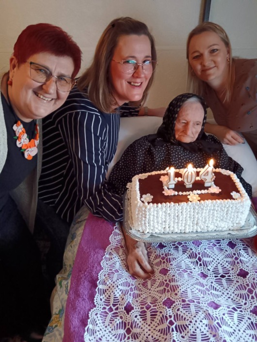 Osim što su je razveselili članovi njezine obitelji s tortom, posjetile su je te iznenadile poklonima i cvijećem patronažna sestra, njezina gerontodomaćica Martina Filipović i koordinatorica projekta Zaželi Mirjana Mišulin.