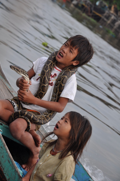 Iako u pravilu djeca u Kambodži ne prose, prijepodne su na nastavi, a poslijepodne prodaju razglednice, ipak, smo vidjeli nekoliko čamaca u kojima se voze djeca s egzotičnim kućnim ljubimcima. Ribari ponekad putuju dva dana kako bi stigli do sredine jezera i provedu i do tjedan dana u ribolovu. Veliki valovi, ograničena hrana i opasni uvjeti uzimaju danak.