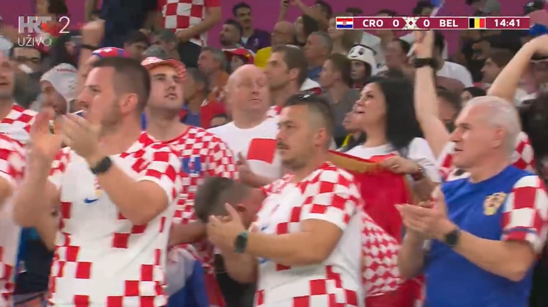 Detalj s utakmice Hrvatska – Belgija na Svjetskom prvenstvu u Kataru // Foto: Screenshot HRT2